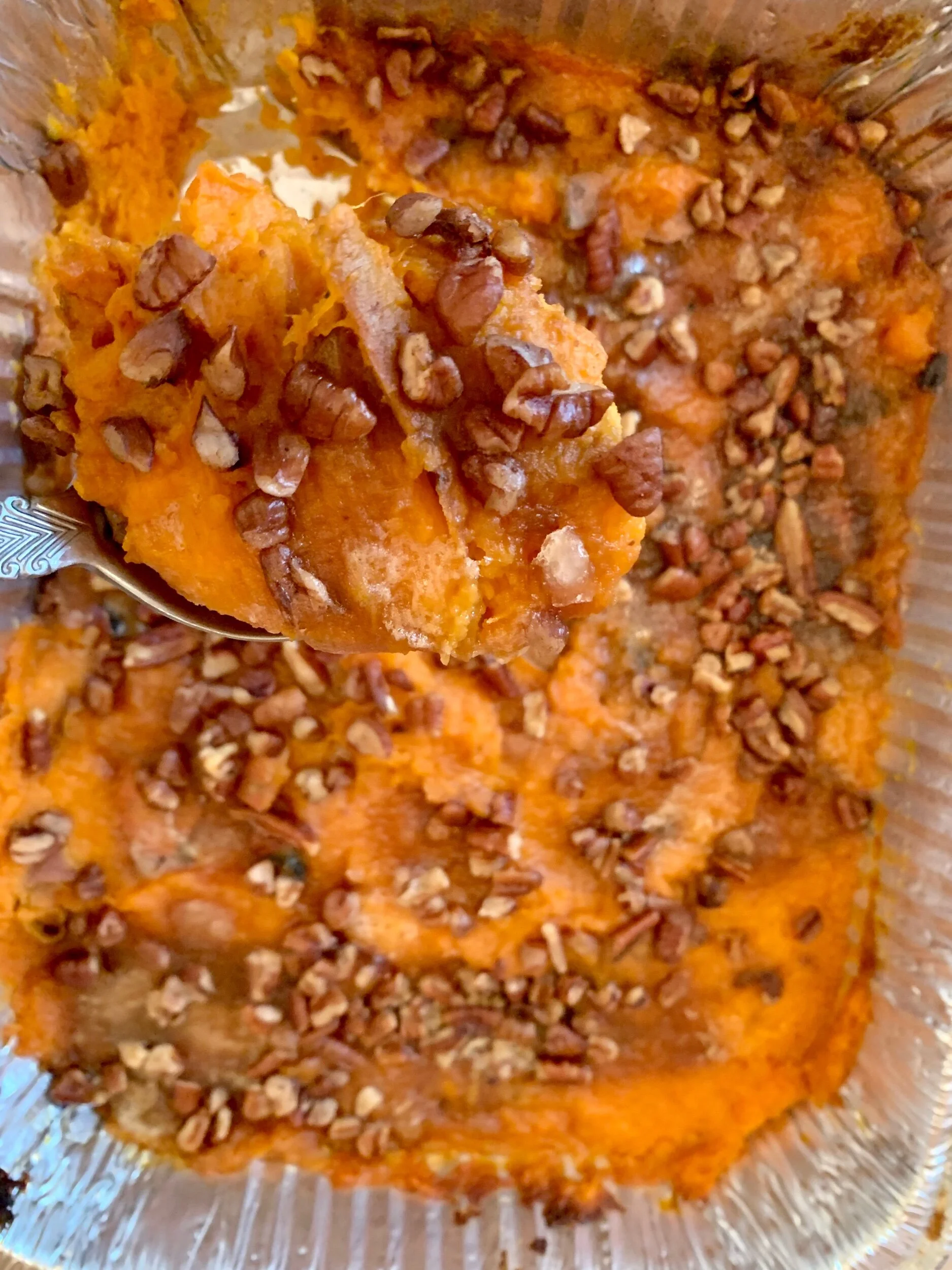 Fully prepared and ready to be baked in your oven at home. No marshmallows here! Orange juice and mascarpone cheese, and pecans give a creamy, nutty, but not overly sweet profile to this holiday favorite. (PS this was an OMG from the Thankgiving open house participants!)
