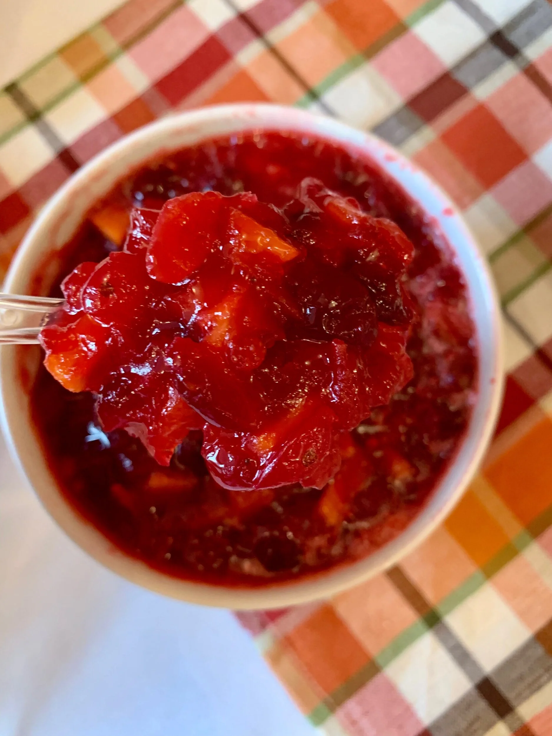 Whole berry fresh cranberry sauce with dried mango. Perfect pair with any turkey dinner and a HUGE upgrade from canned cranberry jelly. Fully prepared and ready to eat. Comes by the pint.