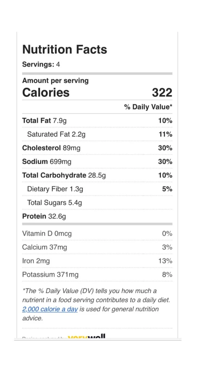 Portion size is 3.5 oz of cooked chicken, 2/3 cup rice and 1/2 cup asparagus