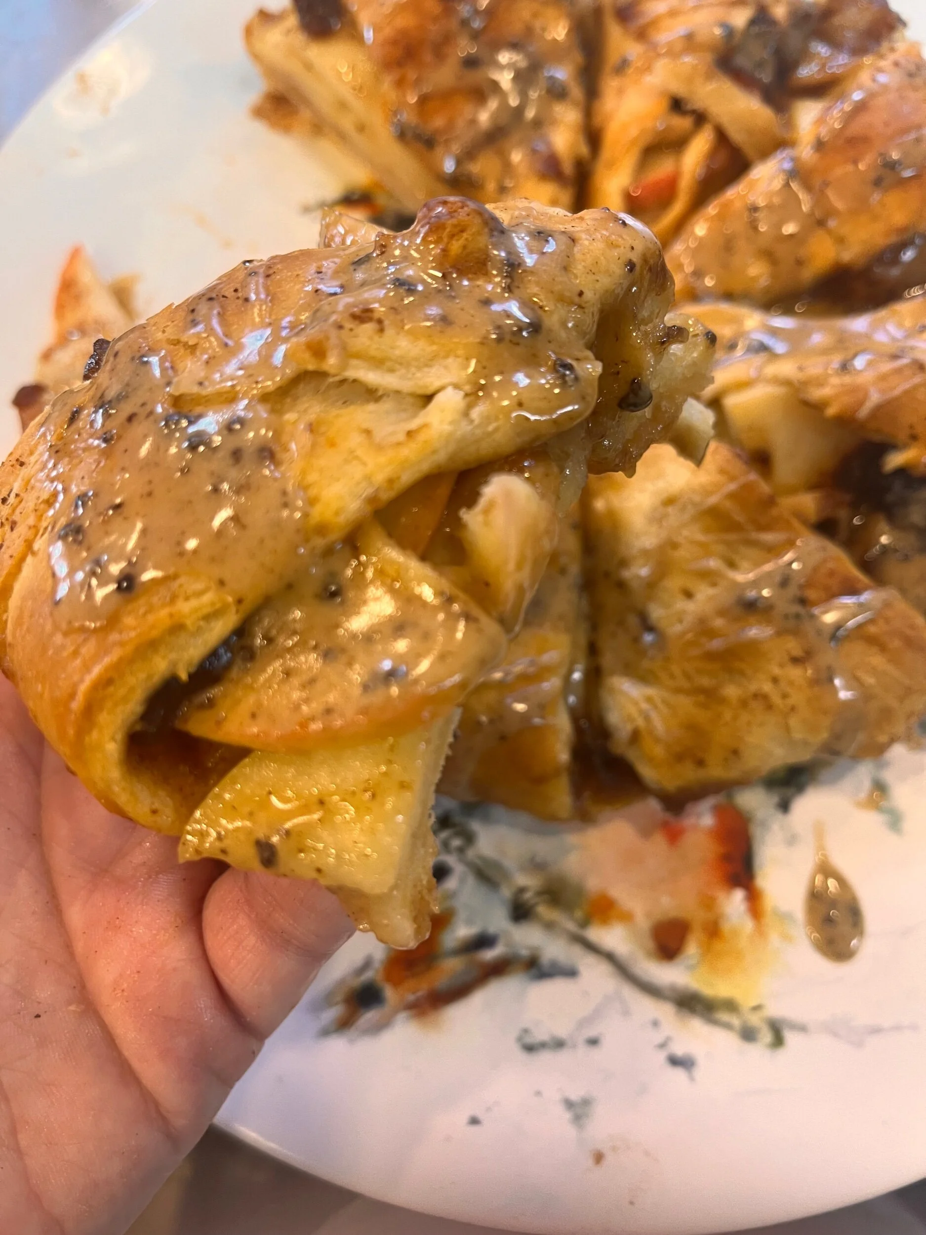 Glaze: powdered sugar, instant coffee, cream, vanilla extract, salt