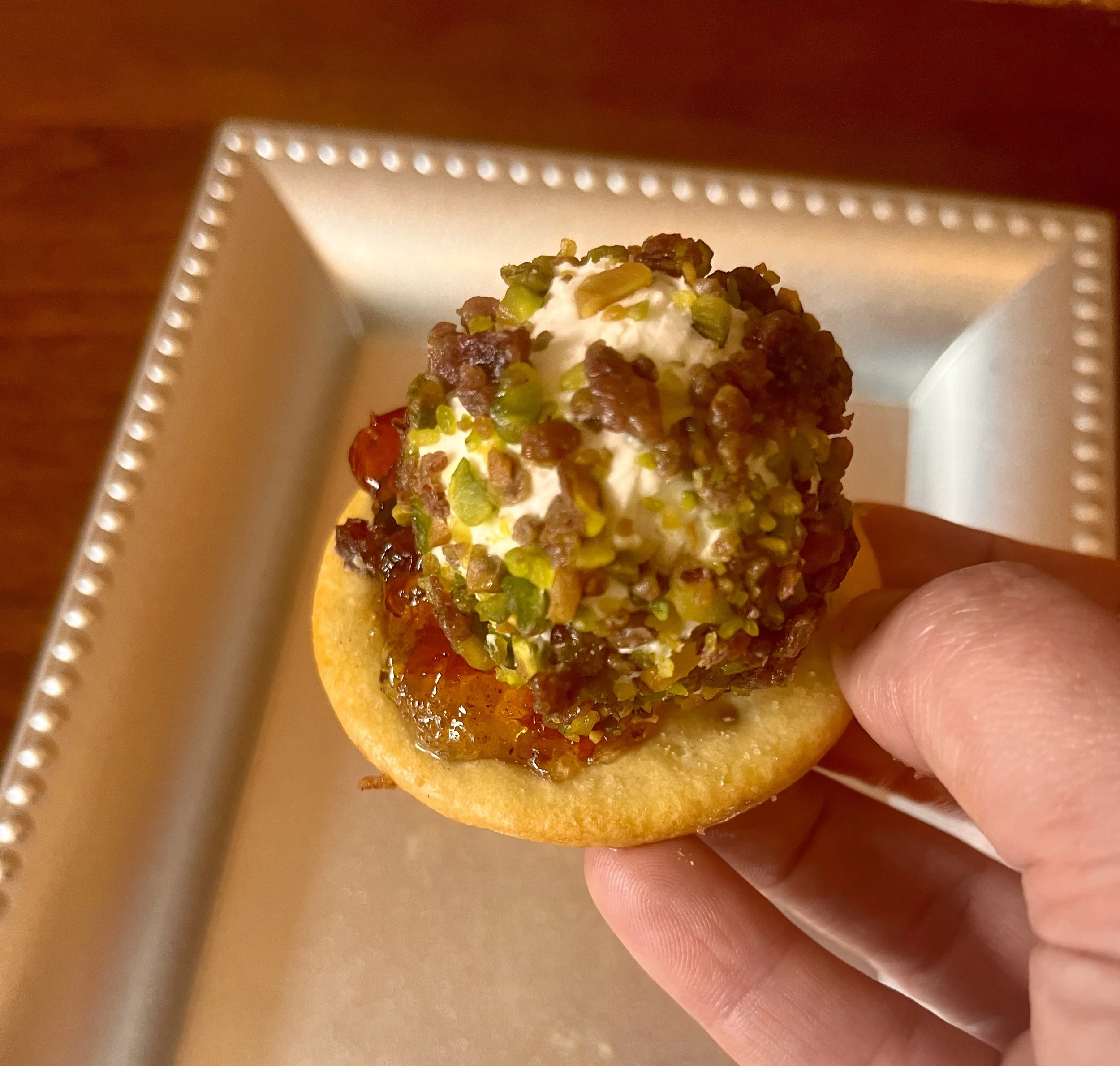 Roll into a log or scoop into cracker sized bites. Chill 10 minutes